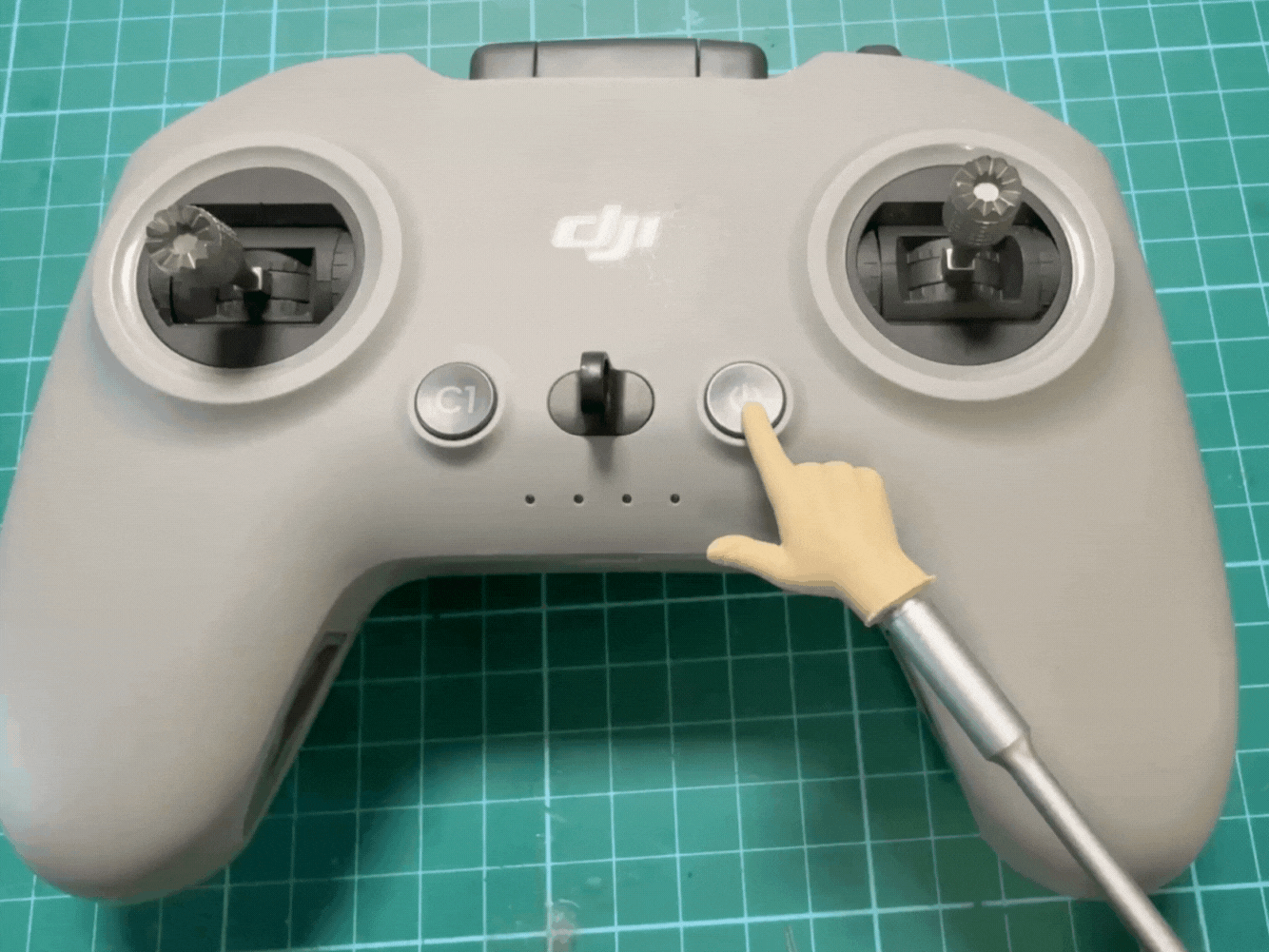 Halte an der DJI FPV Fernsteuerung den Link-Button gedrückt, bis sie zu piepsen beginnt.