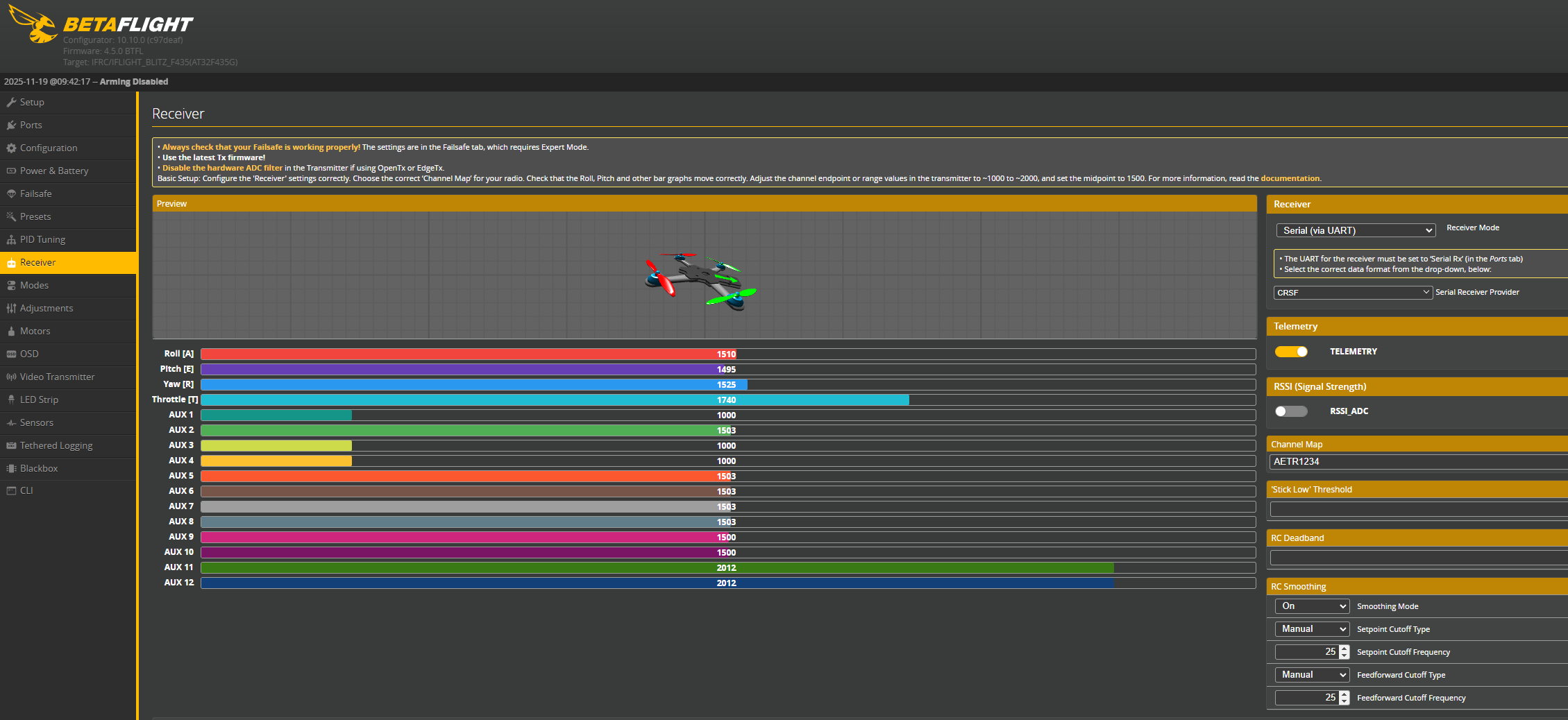 Hier prüfen wir ein paar grundlegende Punkte. Jeder iFlight BNF kommt ab Werk mit einem vollständigen Setup – inklusive Konfiguration, Tuning und Filter-Profilen für optimales Flugverhalten.
